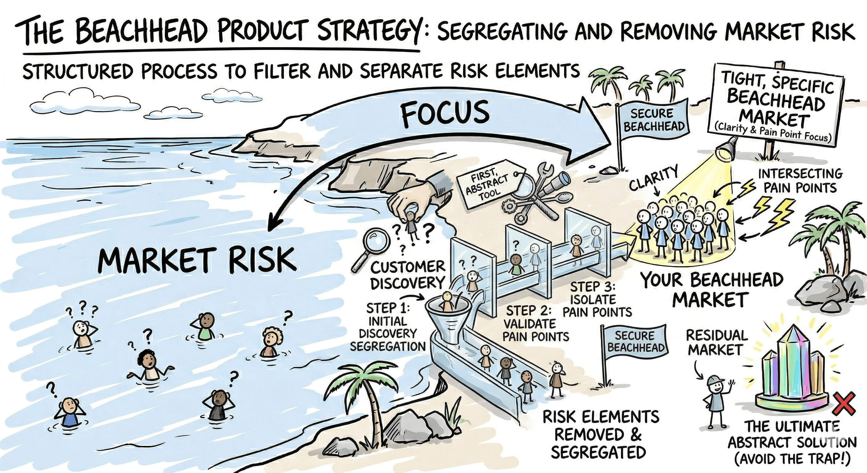 A beachhead forces you to pick a specific, tight audience that has a high probability of intersecting pain points.